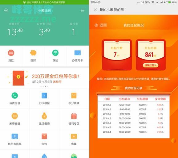 活动地址:小米钱包>幻灯片滑到第三张>做任务蹲点抢