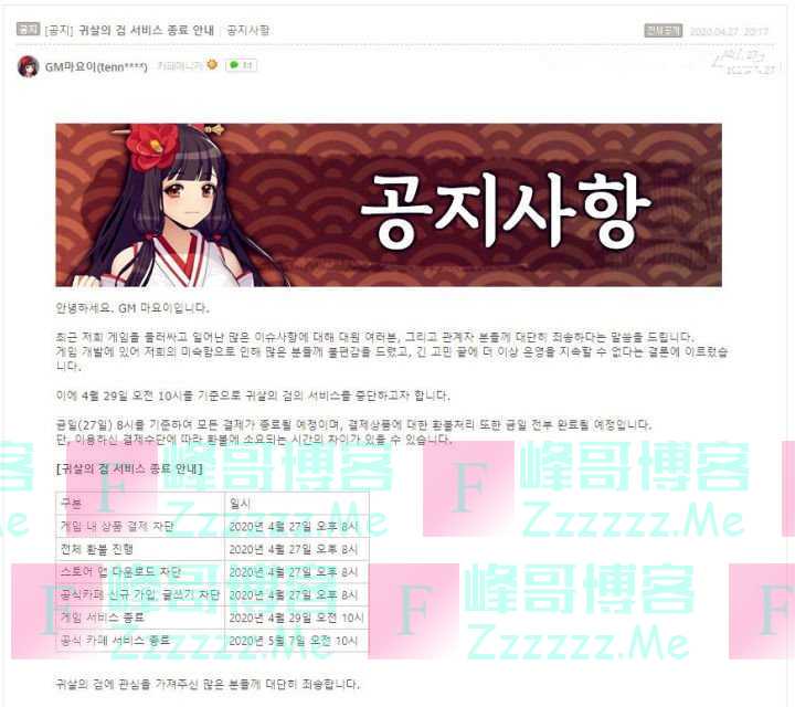然而,运营商这种厚脸皮行为并没有坚持多久,4月28日《鬼杀之剑》游戏运营团再发公告:《鬼杀之剑》游戏服务将于4月29日上午10点全部停止,应用程序的下载和游戏内服务也已下架,并且退款将退还给购买付费产品的人。