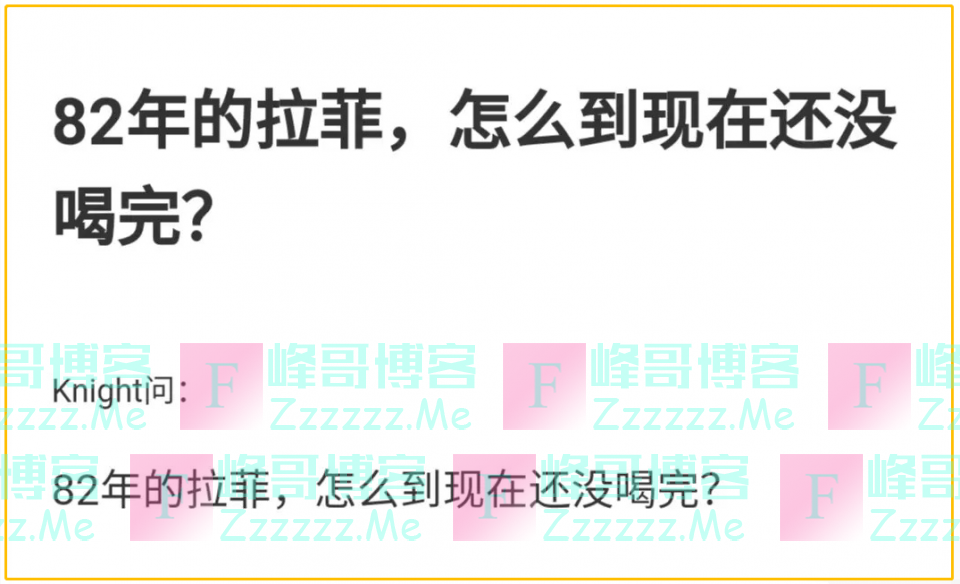在生活中,无论是我们的在上网的时候,还是看剧的时候,亦或者是在和朋友聊天吹牛的时候,我们经常会听到这样一个词汇——给我开一瓶82年的拉菲!!于是就有网友非常的好奇,提出了这样一个问题:82年到底产了多少拉菲,怎么到现在还没喝完??哈哈哈哈......网友的评论真相了!!