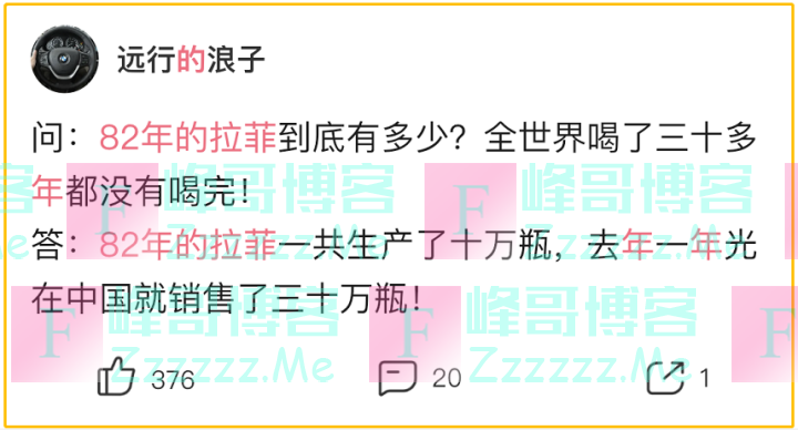 “82年的拉菲,为什么到现在都还没喝完?”网友评论真相了哈哈哈》发布于2020-4-29