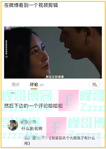 哈哈哈哈......这种让人非常无语的事情,相比大家也都遇到过吧??就像评论这位网友讲的一样,你说你要那两个人大眼珠子有什么用?我就纳了闷了,剧名就在视频的左侧你怎么就看不见呢????