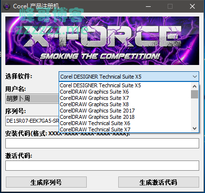 支持Corel公司绝大多数的软件的注册激活