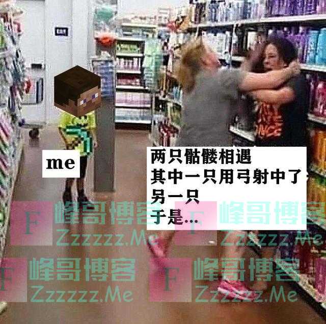 4、为什么说万物皆可mc?配上一段文字,就成了史蒂夫观战骷髅“互殴”的真实画面。建议Mojang可以考虑提升一下怪物们的智商。