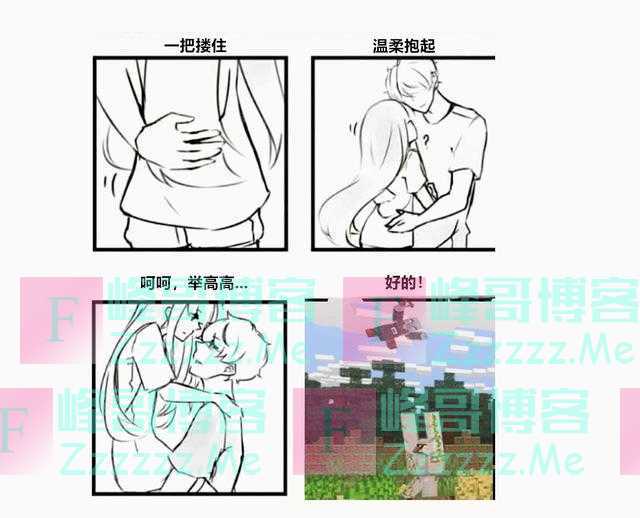 9、看了开头,我却没有猜中结尾!原版是一幅英文四格漫画。永远记住,村庄的铁傀儡,只对村民忠诚,若敢碰村民一下,小心铁傀儡就会跟你玩“举高高”哦。