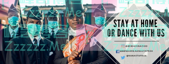“黑人抬棺”的相关视频最近火遍了网络,相信各位可能都对这几位在加纳从事殡葬业的“艺术家”有所了解了。近日“抬棺舞(Coffin Dance)”的创作者Benjamin Aidoo上传了全新的脸书封面,提醒网友们好好在家防疫。