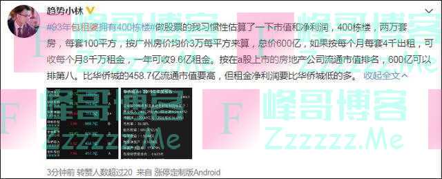 400多栋楼,10000多间房,每栋楼一个月收入50万,地标是在寸土寸金的广州。
