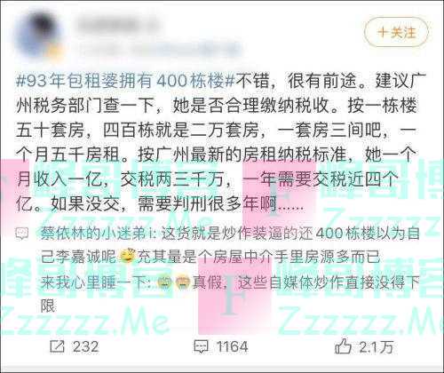 但是当你感受过刷屏的《后浪》之后,还会看到热搜榜上的第一是一条能迅速浇灭你心中刚升腾起的激情的新闻--“93年女生坐拥广州400栋楼”。