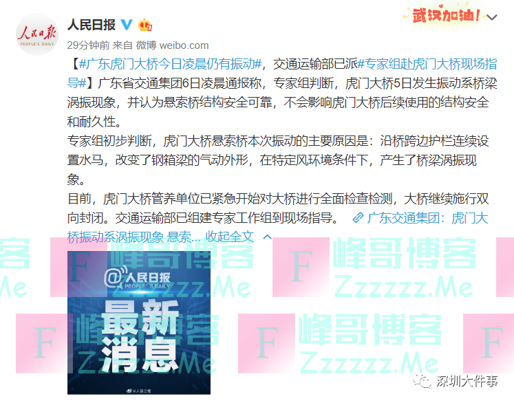 另据人民日报最新报道,虎门大桥今日凌晨仍有振动。