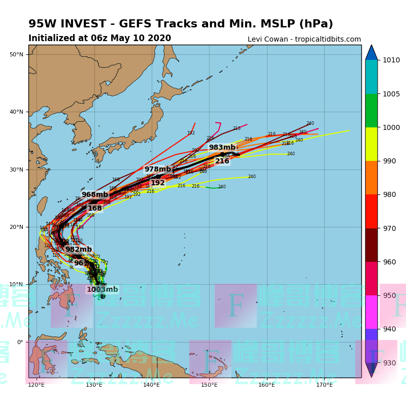 这一大团热带云团其实就是之前在西太平洋上形成的台风胚胎95W,尽管它在5月6日就已经在西太平洋上出现,在过去4天,它的对流此消彼长,在副热带高压的强盛下沉气流下一度气若游戏,接近夭折,不过,在靠近菲律宾以东后,它又得到了发展,对流活动重新增强。