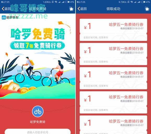 哈罗单车领7张五一骑行券》发布于2018-4-30