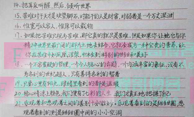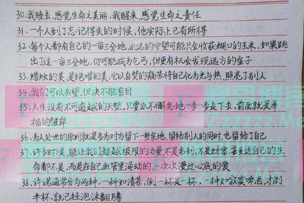 虽然在高中生中,写得一手好字的学生也不少,但是能够象这位学霸这样,能够将平日里的摘抄写出书法“范”的学生还真不多,这就是我们眼中的学霸,将一点一星做到极致,欣赏了这位学霸的摘抄,你有什么感想,是否也让你感到震撼了。