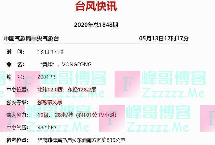 官方预报:确定了,最大时速101公里,1号台风黄蜂连升2级,潜力大提升,或2天后登陆,台风雨要增强,暴雨或连下4天。我们先看最新数据,13日下午5点,我国中央气象台播报,1号台风诞生后又西行了,且跨过了48小时警戒线,此时位于菲律宾以东海域,距离东米沙鄢地区约300公里,地理坐标为12.0N,128.2E。