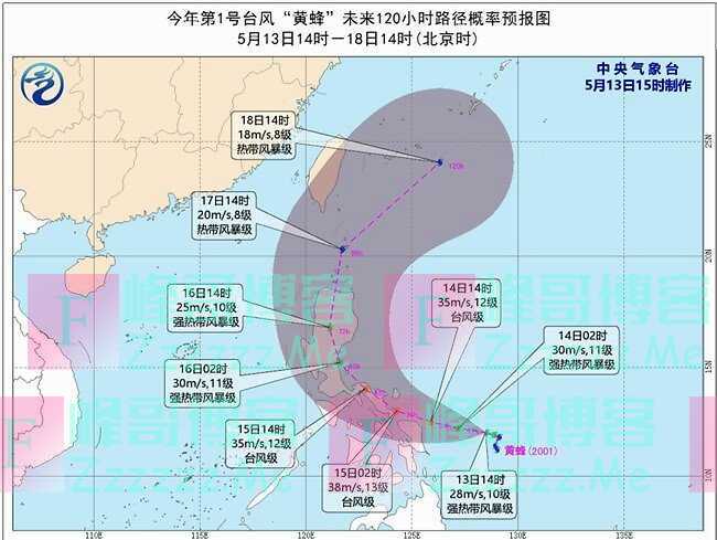 如今,官方再次预报后,认为1号台风的最大风速将达到38米/秒,也就是风力13级。这样一来,我们确定了,1号黄蜂潜力大提升了,同快速升级一样,也是连升2级。自然作为今年首个台风,甚至其潜力提升的家伙,那么它的路径和影响,就值得关注了。这一点,我国中央气象台指出,黄蜂将一路西行,大致在2天后,也就是15日上午登陆。