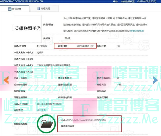 据广电总局官网显示,,2020年二月份首批国产网络游戏版号名单并没有英雄联盟手游。通过商标查询发现,英雄联盟手游主要集中于去年6月份和今年1月份提交了商标注册。