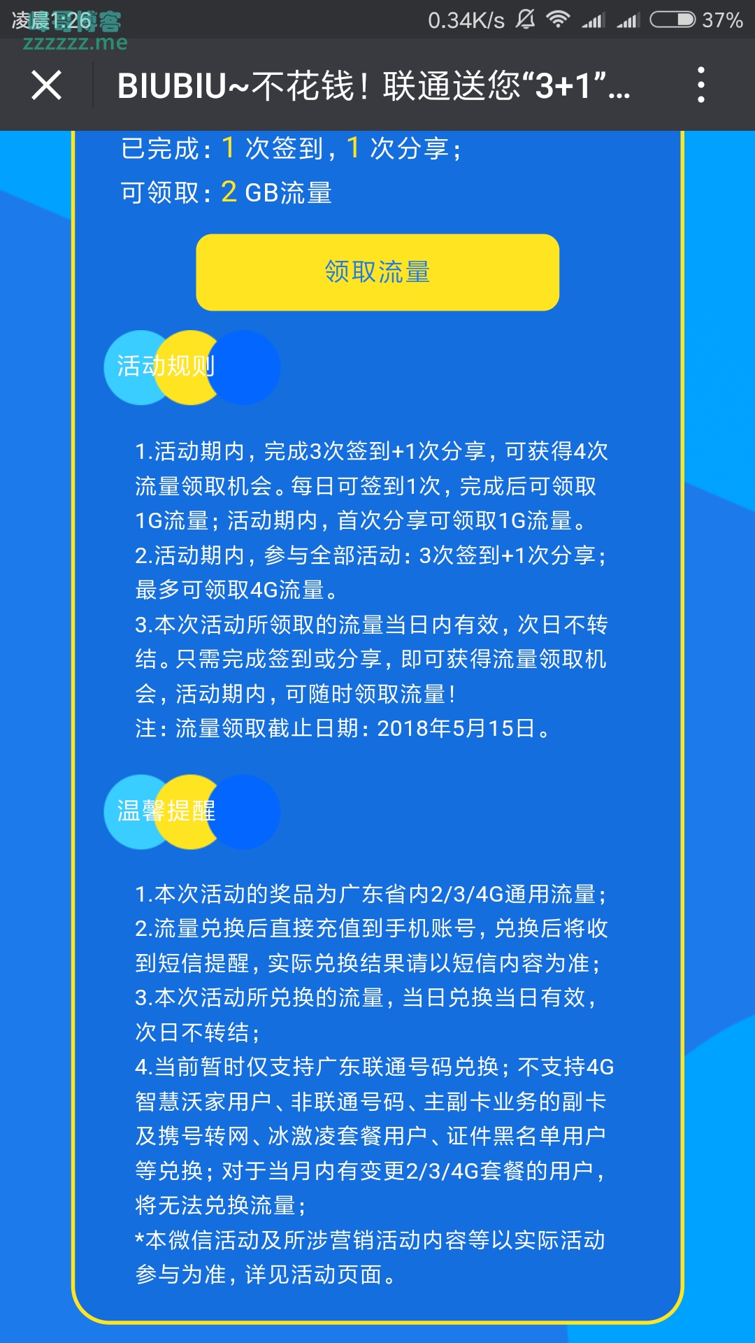 广东联通签到免费领取3+1G日租包》发布于2018-5-8