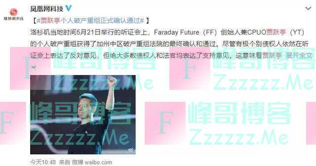 历时七个月,贾跃亭终于破产成功,恭喜!》发布于2020-5-29