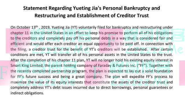 但其实没有那么惨,因为贾跃亭申请的是美国破产法第 11 条《 重组 》法案。
