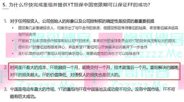 当然,债权人们也是被逼和贾跃亭绑到同一辆战车上,毕竟如果 FF 一直不能融资,贾跃亭永远不可能还的起他们所有人的钱,现在让 FF 做起来,他们还有赚的可能性。