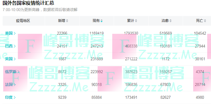 直到近段时间,巴西那边疫情全面爆发,一天大概会新增20000以上的确诊人数,很有可能会成为下一个美国。