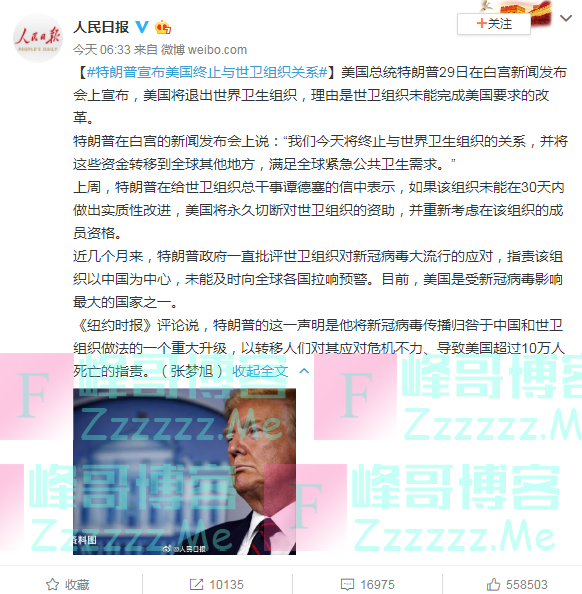 他觉得美国那边每年会给世卫组织那么多研究经费,然而这一次的疫情他们却没有帮美国解决,所以就直接退出了世卫组织。