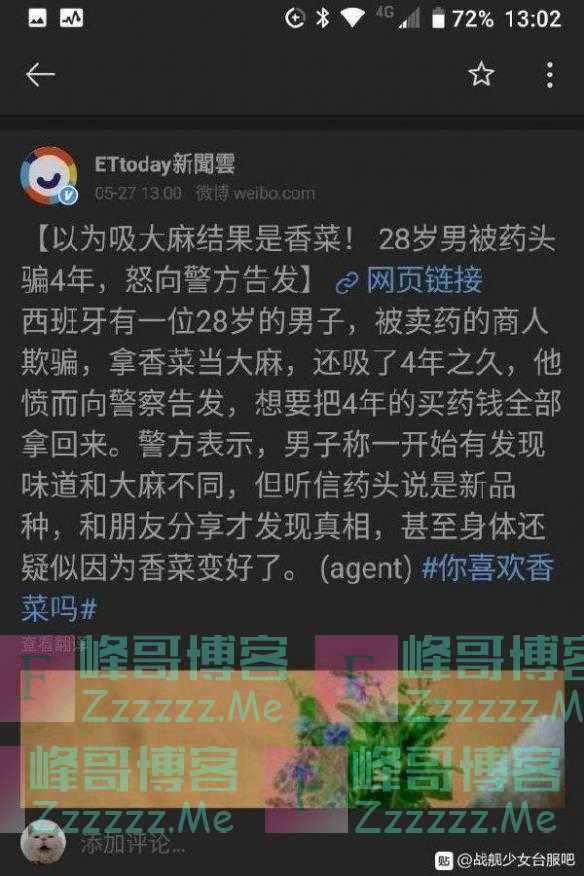 今日囧图:以为吸食大麻结果是香菜,28岁男被骗4年愤怒报警》发布于2020-5-31