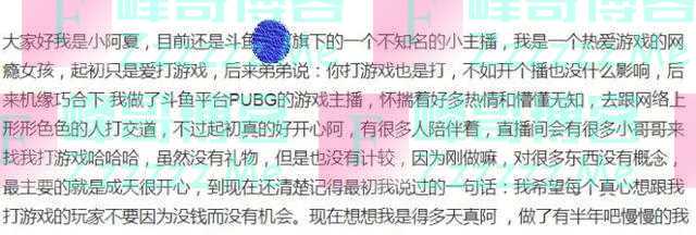 “小阿夏”是斗鱼平台的一名绝地求生板块的小主播,由于粉丝量很少,把她比作新人主播也不为过,不过小阿夏却已经直播有一年以上了。近日,小阿夏就在某社交平台上发布了4000字长文,而矛头正是自己的工会。