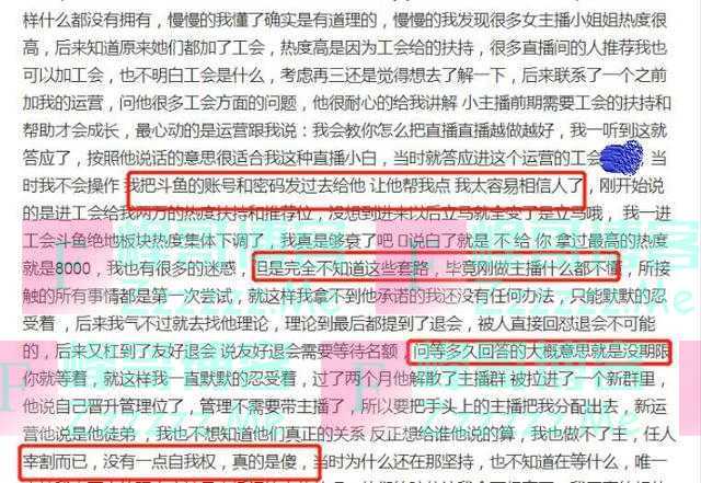 在一般人眼中大主播都是很风光的职业,打打游戏,聊聊天就能收到巨额礼物,甚至很多大主播都能月入百万,实在是让人羡慕。但是也有不少熟悉直播的小伙伴知道小主播一般而言生活是没那么滋润的,甚至还会被工会“压榨”。那到底有多厉害呢?最近一位有一位小主播就发长文讲述了自己的亲身经历。
