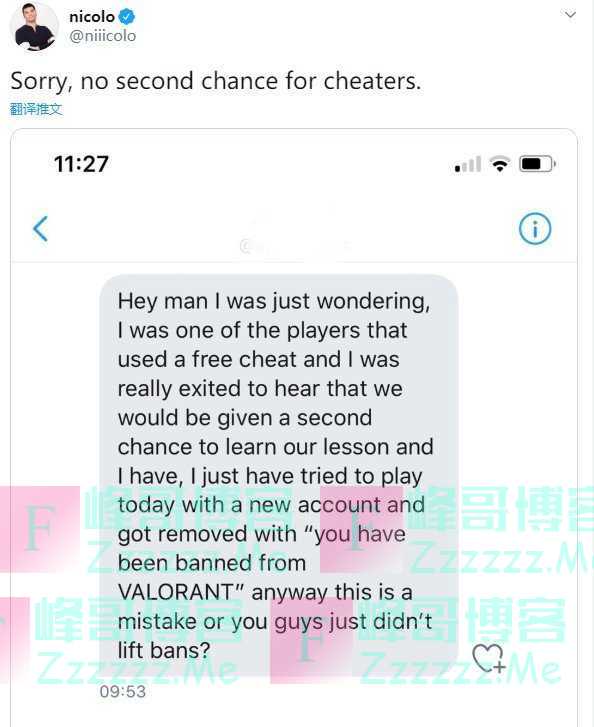 对此,Nicolo Laurent非常简洁地回应了这位网友:“抱歉,我们不会给作弊者第二次机会。”