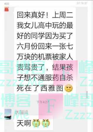 留学生花七万机票回国却受到父母责备自杀,这警醒了什么?》发布于2020-6-6