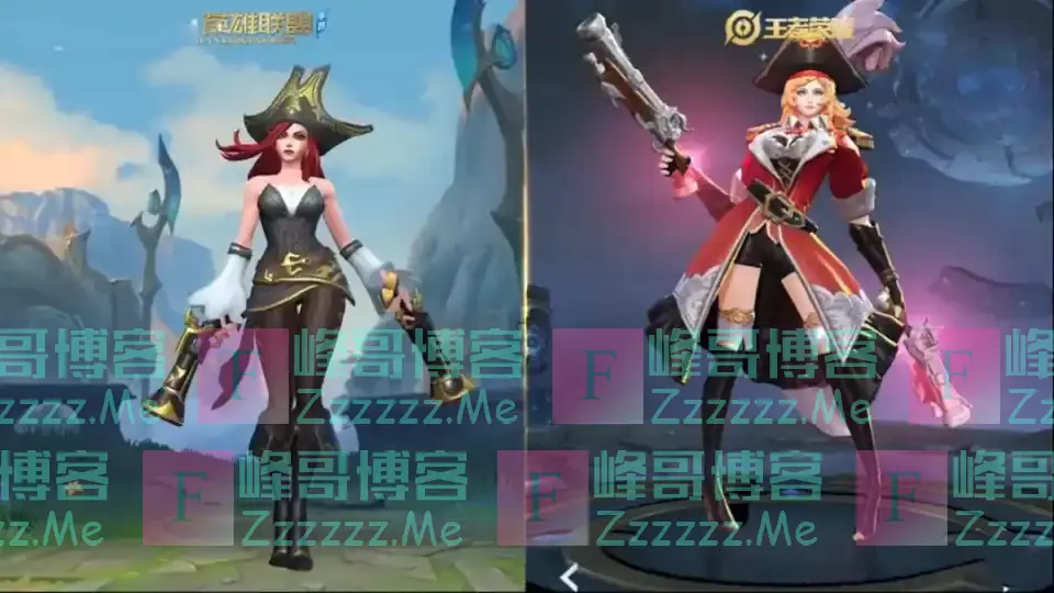 第二个英雄则是虞姬和LOL里面的女枪,我们要注意,这里虞姬是用的加勒比的皮肤,而女枪则是原皮肤。其实这两个英雄的模型是差不多的,都是海盗造型,我想看过《加勒比海盗》的玩家都知道。不过从模型的颜值来看,明显是虞姬的更好看一些。