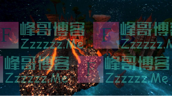 这个地方的火就很多了,首先是漂浮在岛屿周围的火苗,其次就是最左边那个巨大的火山口,再加上城堡的颜色也是红的,整体非常“火热”。