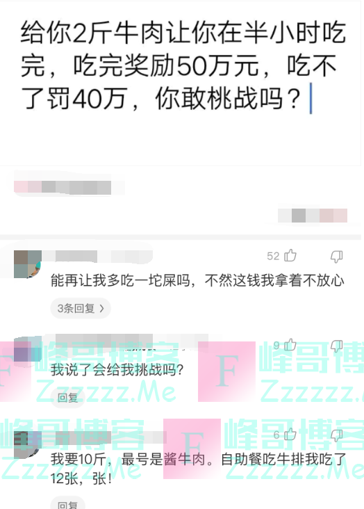 半小时吃完二斤牛肉奖励50万,吃不完罚40万,你敢挑战吗?哈哈》发布于2020-6-30