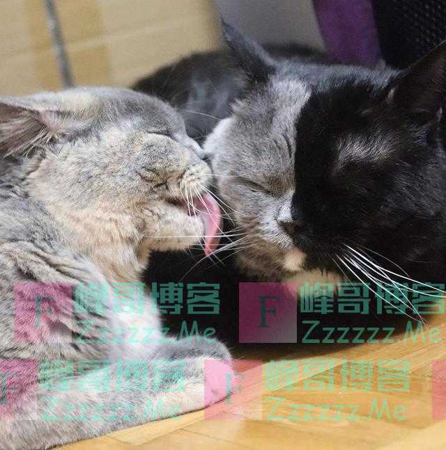 他其中一对儿女,一只纯灰色,跟他半张脸的颜色一模一样,另一只是黑色的,连脖子上那一簇白毛也复制粘贴过去了。