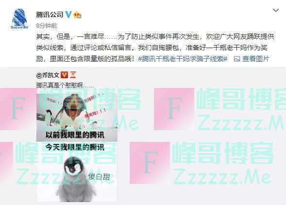 看来腾讯被骗这事儿是实锤了,于是这件事开始迅速在网上发酵,首当其冲的就是腾讯自己烦的一笔。。。