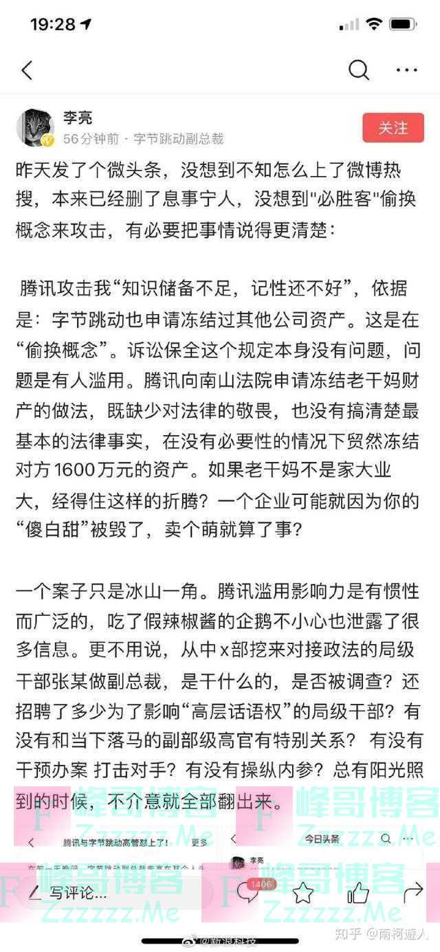 从这件事我们也可以看出腾讯和字节的争斗趋于白热化,已经到明面上就开撕的地步了。毕竟字节依靠头条和抖音抢走了腾讯的大量流量和广告,而腾讯也在微信中加上了视频号试图反制。而这位李亮副总裁也不是第一次在个人头条号上面撕腾讯了。