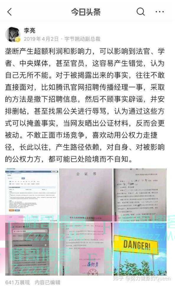 所以,本来就一直在各种找机会控诉腾讯的李亮,大概率是字节跳动对于腾讯市场垄断地位的蓄谋已久的攻击策略的一个具体表现罢了。