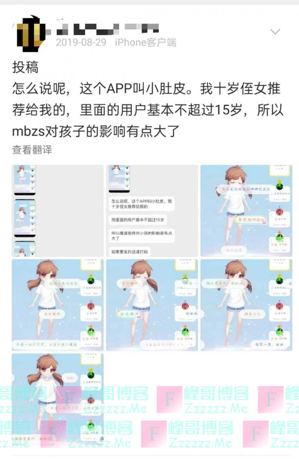 多名网友发帖曝光“小肚皮”中出现许多不适合未成年人的内容,包括暧昧词汇、语言暴力、亲吻配图,甚至有诱导未成年人“躺床上拍,伸直,从大腿跟拍到脚指头”等猥亵内容。