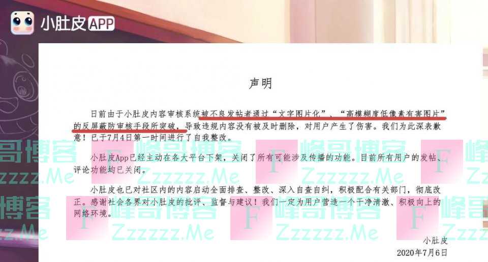 “小肚皮”App则表示“已主动在各大平台下架,目前所有用户的发帖、评论功能均已关闭,已对社区内的内容启动全面排查、整改。”
