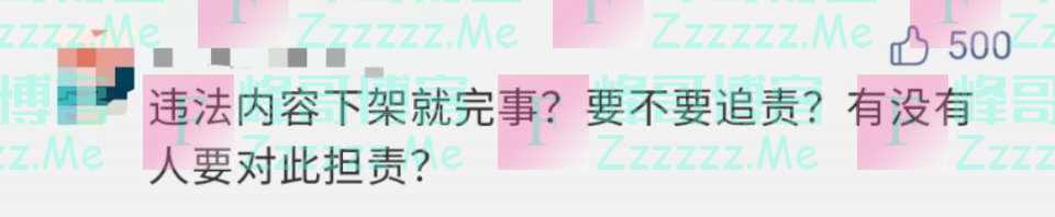 不过对此,网友们似乎并不买账,觉得“整改”太轻飘飘了,质疑“违法内容下架就完事?要不要追责?”