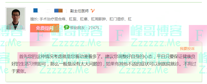 当然,还有的医生看过火影,对于这位网友的问题也是第一眼就看出来了,于是回答该网友的问题就是认为是动漫看多了,这种情况只需要调整心态就行了,如果是真的有不适就去医院就医。