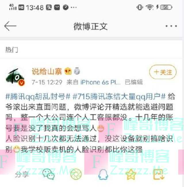 QQ胡乱封号,却要人脸识别解封,网友担心人脸信息被泄露滥用》发布于2020-7-15