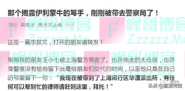 怒怼伊利蒙牛六大罪的“王小七”被抓!律师:24小时内会有结果》发布于2020-7-19