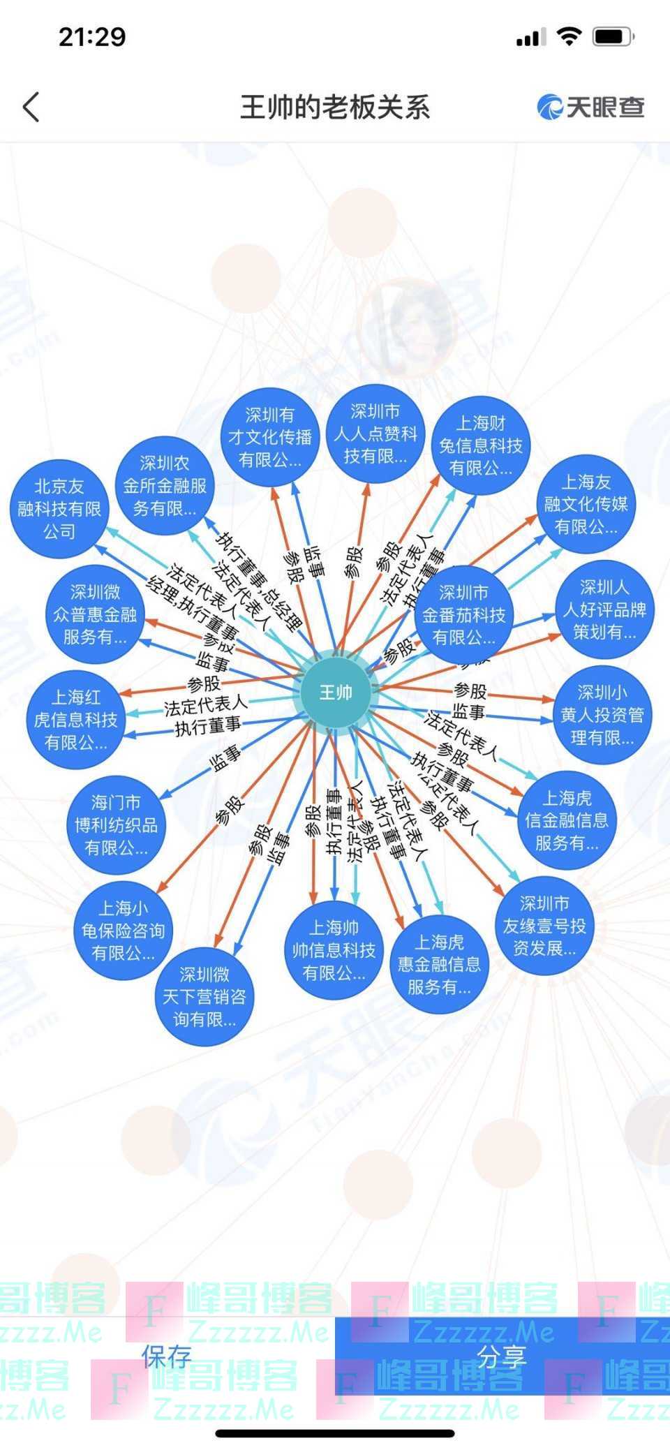 根据天眼查数据显示,王帅名下实际控制的公司有22家,其中包括如:上海虎信金融信息服务有限公司,成立于2015年2月6日,注册资本5000万元,王帅为法人,持股比例95%;北京友融科技有限公司,成立于2016年1月29日,注册资本1000万元,王帅为法人,投资比例89.08%等公司。