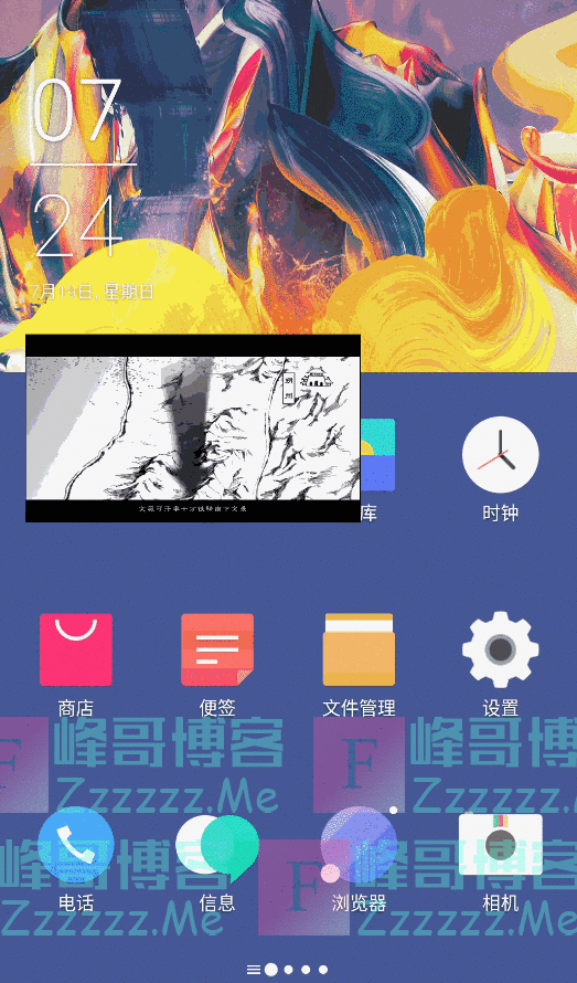 视频悬窗后返回手机桌面主页任可播放,播放窗口可自行调节大小。