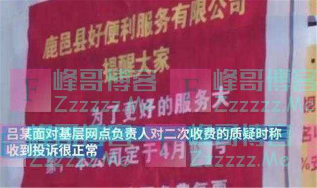 但要论这件事的重点,“假人安检员”还得退居二线,基层举报上级网店二次收费,目前才是热点。9个举报人之一的赵女士说:吕某联合当地邮管局部门,强制要求我们19个乡镇快递点签署第三方协议,开会期间不许带手机、不许带走协议,只能签字妥协。吕某要求19个乡镇点委托一家公司作为第三方,进行有偿配送,协议必须签,但不能带走。另外,还在各基层网点张贴介绍收费的海报。