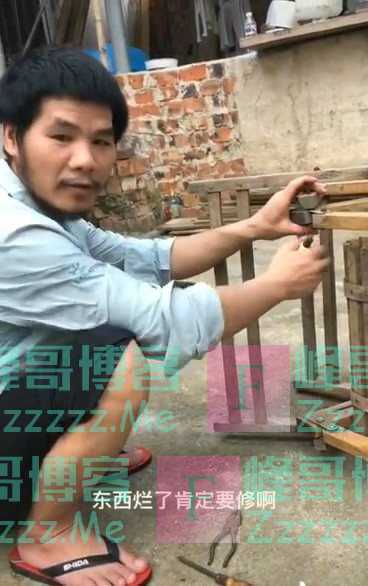 画外音问他,凳子都破成这样了,还修他干嘛,扔了算了。