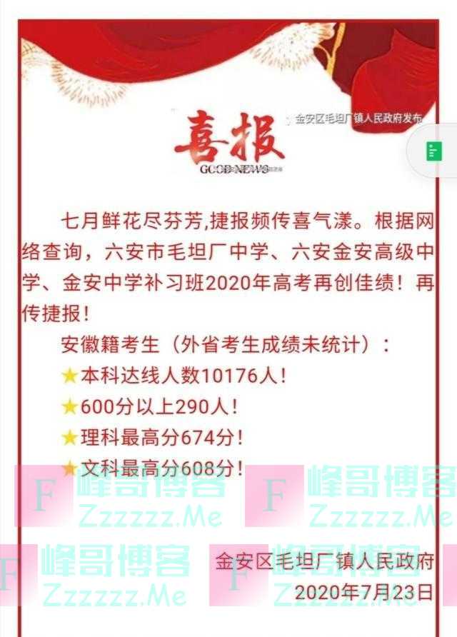 毛坦厂公布高考成绩遭网友嘲讽:一学期4万8的学费,最高分才674》发布于2020-7-27