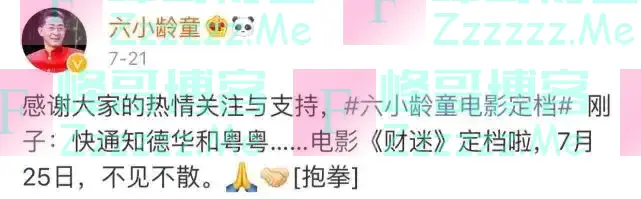 这边厢,六小龄童在社交平台上急切地让网友帮忙通知马德华和汪粤,新片《财迷》定档上映;