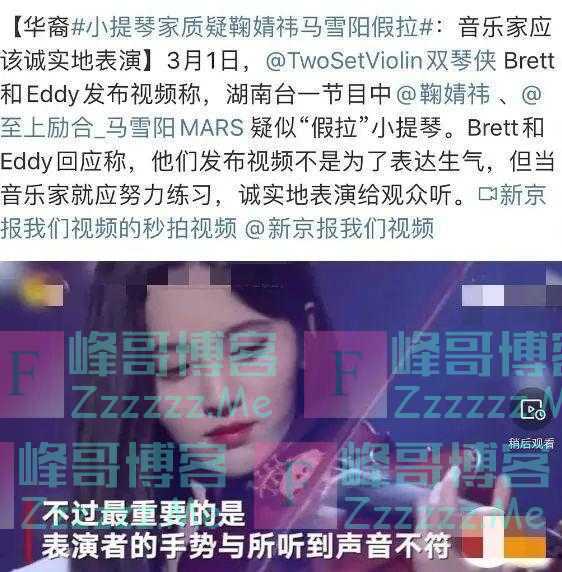 如果说鞠婧祎真的为自己的工作付出了实打实的努力与汗水,大家也就不多说什么了。但是从目前的状况来看,她的辛苦仿佛只是线上限定。曾经她在微博放出自己拉小提琴磨红指尖的照片,付出这般努力却在晚会的现场假拉提琴,之后还被专业人士打假。