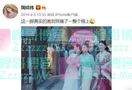 分享自己戏中崴脚的片段,说自己因此瘸了一晚上。当时又被人扒出她崴脚的原因是因为